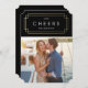 This art deco inspired design features a black and gold colour scheme with a touch of faux gold foil surrounding the word "Cheers". Deco is the perfect holiday design for newlyweds or couples celebrating their new life together!