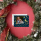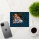 Unique, classy, trendy, pretty and decorative seasonal Christmas Holiday and Happy New Year greetings card. With room to customise or personalise with a photo, family name or names, and text of your choice. Cute golden snowflakes pattern and jumping deer design, on a traditional blue and black coloured Buffalo Lumberjack chequered plaid background. And a customisable season greeting poem on the backside of the card, including your return address, city, zipcode and state.