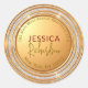 This round return address label is a small crown for your mail, featuring a rich gold background framed by a double border of sparkling, crystal-like gems. The design is fully customisable, with the example showcasing a two-font style: a bold, burgundy serif for the first name and an elegant script for the last. The address is gracefully arched around the inner border, ensuring readability and a touch of sophistication. This label adds a regal finish to any envelope, making every piece of mail a luxurious statement.