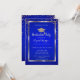 Gold glitter graduation cap, and gold diamonds on a royal blue background.