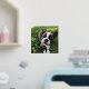 Square photo print with your dog photos inside a sketched frame in gold foil with paw prints. Gold foil dog photo print personalised with your puppy's name.