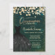 Gold Dots,Black Dress Green Quinceañera Invitation
