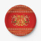 Gold Double Happiness Symbol with flowers and bird Paper Plate