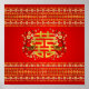 Gold Double Happiness Symbol with flowers and bird Poster