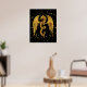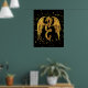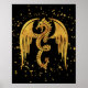 Gold Dragon In The Stars Poster on Black Backdrop - In a dark room, a single light illuminates a magnificent golden dragon as it flies majestically in the stars. Printed against a deep black backdrop, this poster is an ethereal addition to any wall. Perfect for anyone who loves dragons, this poster is sure to bring enchantment to your home.