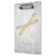 Jot down notes and reminders on a secure surface with a Gold Dragonfly Personalised Clipboard. Clipboard design features a colourful dragonfly, a soft white leafy vine against a light grey grunge damask background with an area to personalise with your name. Additional gift items available with this design as well as a variety of colours.