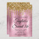 Gold Dripping Glitter Light Pink Foil Sweet 16 Invitation