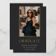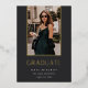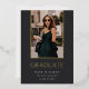 A simple and elegant graduation announcement design for high school, college or advanced degree graduations, featuring a vertical photo aligned at the top and trimmed with gold foil on a rich charcoal black background. Personalise with your graduate's name, school, and graduation year. Add a personal message to the back, along with an additional photo.