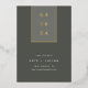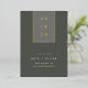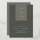 A simple and elegant save the date design for modern couples, featuring a gold foil geometric element bearing your wedding date against a tone on tone dark smoked olive green background. Personalise with your names, wedding location, and website or additional details at the bottom.
