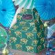 Gold Eye of Horus Egyptian symbol pattern on teal background.