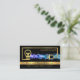 A black cover features a gold electrical circuit that is powered up by a hot blue electrical lightning. At the top corner lies your prestigious name. Near the base of the card is a gold stripe layer that has your business name with the contact details just underneath. Lettering here are in faux gold.