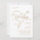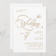 Elegant gold and white wedding invitation featuring romantic swirly calligraphy lettering with details on the back. Perfect for any season. For more advanced customisation of this design, please click the BLUE DESIGN TOOL BUTTON above!