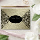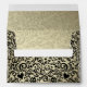 This envelope design features a Gold background beautifully accented with an ornate black damask pattern. The intricate floral and heart motifs create a luxurious and dramatic effect, while the dark tones bring out a sense of sophistication and mystery. The central area is kept clean for customisable text, framed elegantly by the rich ornamental design.
