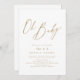 Modern "oh baby" script minimalist design in gold colour, simple and elegant. Great minimal baby shower invitations