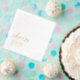 Add stylish detail to your special day with this personalised party napkin. This design features stylish typography "Cheers" and custom text in gold foil stamp. You can change the foil colour to silver or rose gold. Matching invitations and party supplies are available in my shop BaraBomDesign.