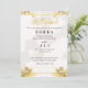 At the center of the design is the Arabic calligraphy of "Bismillah," invoking blessings as you begin this new chapter together. The rich gold tones and exquisite details create a timeless and graceful aesthetic, perfect for an Islamic engagement announcement.