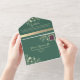 Gold Emerald Green and Purple Photos Wedding All In One Invitation