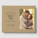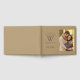 Elegant gold wedding guestbook personalised with a special engagement photo, your names, monogram, wedding date, and location on the front. Add your names and wedding date to the spine.
