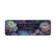 Elevate your correspondence with the opulent, celestial beauty of this intricate botanical composition. The design showcases magnificent lavender teal peony blooms, each rendered with fine gold etched detail that creates a shimmering, multi-layered texture. These florals emerge from a dreamy background of indigo swirling cloud patterns and deep violet waves, all illuminated by a spray of glowing gold stardust. A horizontal dark purple frame with a slim gold border provides a sophisticated space for your information. This return address label is a premier choice for celestial-themed weddings, moody winter celebrations, or high-end artistic mailings. It ensures your envelopes carry a sense of magical, organic luxury that will captivate your recipients from the moment your mail arrives.
