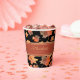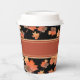 Gold Fall Leaves & Terracotta Stripe Custom Black Paper Cups