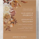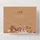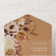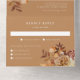 Gold Fall Wedding All In One Invitation. This elegant all-in-one wedding invitation features hand-painted watercolor burnt orange and terracotta leaves, cream and beige dahlias, and beautiful rust-coloured roses on a gold | mustard yellow background. RSVP with meal choice is included with this stylish invite. Find matching items in the Gold Autumn Romance Collection.