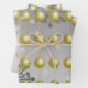 Add a touch of elegance to your holiday packages with these Gold Fancy Christmas Ornament Wrapping Paper Sheets. Featuring a fancy ornament design with festive curled ribbons, delicate white snowflakes, and a soft grey background, this paper captures the spirit of the Christmas theme with style. The repeating tiled pattern and simple layout highlight sparkling holiday baubles, making it perfect for wrapping any gift. A beautiful and practical Christmas gift supply, these sheets bring festive sophistication to every present under the tree.