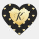 Gold Faux Foil Heart Pattern on Black Monogrammed Heart Sticker