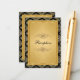 This elegant black and gold damask reception enclosure card has moveable ornate gold scrolls and a gold FAUX glitter PRINTED (not real glitter) border on it that matches the 50th wedding anniversary invitation shown below. If you want to really make it look high-end, just run a glue stick over the glittery band and sprinkle real gold glitter over it for a real DIY eye-catching look. No one will know you did it yourself! ALSO, if you change fonts or font sizes, your text may not fit properly any more. Zazzle will not edit anything for typos, alignment, or anything else, and I will not see your card. Everything will print as it appears on your monitor. If you need help with this card, please contact me BEFORE you order it. This invitation is designed to fit the 2.5"x3.5" size card. If you change to another size, the design will no longer fit properly, so if you want a different size, please contact me so I can re-design it for you. If you require any other matching items in this design, please email your request to niteowlstudio@gmail.com.