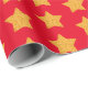 Gold Faux Glitter Star Pattern Red Gift Wrapping Paper