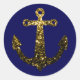 Gold faux sparkle glitter Anchor navy blue Classic Round Sticker