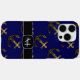 Gold faux sparkles Anchor pattern navy Monogram Case-Mate iPhone Case