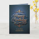 This elegant birthday card features a rich sapphire-blue background adorned with golden flourishes and soft, swirling accents that evoke timeless grace. The centre showcases “Happy Birthday” in radiant gold script, paired with the heartfelt phrase “to my dear grandmother” for a touch of warmth and sophistication. The text on the front and inside is customisable, transforming this card into a personalised keepsake.