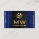 Gold Fin Tech Icon | Black Leather Gold Blue Business Card