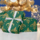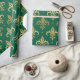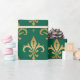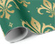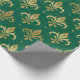 Gold fleur-de-lis seamless pattern on green wrapping paper