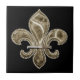 Gold Fleur de Lis Square Ceramic Tile 4.25" - blk