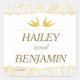 Exotic flowers and foliage create a backdrop for the decorative overlay which features two birds in flight. A lovely sticker for your wedding day. <a href='http://www.freepik.com/free-vector/wedding-invitation-of-sketches-yellow-leaves_844453.htm'>Designed by Freepik</a> <br/><br/>The sticker is easy to customise with your wording, font and font colour.<br/><br/>Not exactly what you're looking for? All our products can be custom designed to meet your needs at no extra charge.<br/><br/>Simply contact us at heartfelthelper@gmail.com<br/><br/>Coordinating products available: Gold Flora Wedding Invitations<br/>Gold Flora Bliss Lined Envelopes<br/>Gold Floral Bliss Postage Stamp<br/>Gold Flora Bliss Response Cards<br/>Gold Flora Bliss Stickers<br/>Need something more? Just ask us!