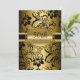 Anniversary Invitation. Gold & black floral pattern with jewel bow. Exclusive Zazzle. Customise with your own details. PLEASE NOTE all flat images! They Do NOT have real Diamonds or Jewels!!