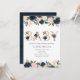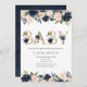 Baby shower invitation featuring gold, blush, and navy floral elements