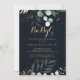 This gold floral BabyQ baby shower blue barbecue invitation is perfect for a rustic couples baby shower or baby sprinkle. This artistic design features hand-drawn gold floral and watercolor eucalyptus green foliage in a dark blue background, inspiring natural beauty.