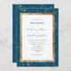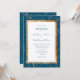Beautiful modern elegant faux gold floral all season wedding invitation. Blue background with coordinating blue typography and names in fancy script. A sophisticated & chic wedding invitation for any season of the year.