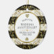 Elegant modern design with black and white stripes background and shiny gold tones floral circle frame, customisable 50th wedding anniversary template.