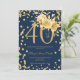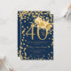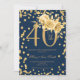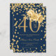 Gold Floral & Confetti 40th Birthday Navy Invitation