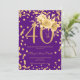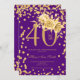 Gold Floral & Confetti 40th Birthday Party Purple Invitation