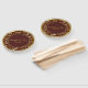 Elegant gold floral damask with brown circle and background- save the date