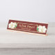 This design features a gold edge floral graphic and frame with the flowers in white with a green leaf. Impress colleagues and visitors with this stylish nameplate when they see it sitting on your desk