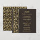 Gorgeous gold and black fiftieth Wedding Anniversary invitation with subtle black vertical stripe background on invitation front and elegant, detailed gold floral lace side panel. Back of card has matching gold lace pattern over black. Customise the invitation front with your information. Card is also available in square version in my store.