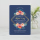 A beautiful, navy blue, watercolor invitation with a polygonal gold frame and clusters of pink and red flowers and foliage. (<a href='https://www.freepik.com/free-vector/watercolor-floral-frame-with-golden-polygonal-lines_2628011.htm'>Designed by Freepik</a>). <br/><br/>The card is easy to customise with your wording, font and font colour.<br/><br/>Not exactly what you're looking for? All our products can be custom designed to meet your needs at no extra charge.<br/><br/>Simply contact us at askcottonlamb@gmail.com.<br/><br/>Coordinating products available: Just ask us!