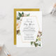 Floral drive through bridal or baby shower invitation featuring blush pink peonies, wild herbs, cotton and lilies with a gold geometric frame.