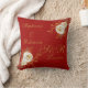 Gold Floral Monogram On Red Christmas Wedding Cushion