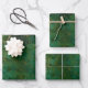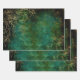 Gold Floral Outlines on Green Wrapping Paper Sheet